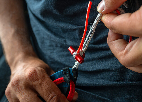 • Front Rescue Container: Integriertes Frontrettungssystem mit V-Leinenführung zur Schulteraufhängung.