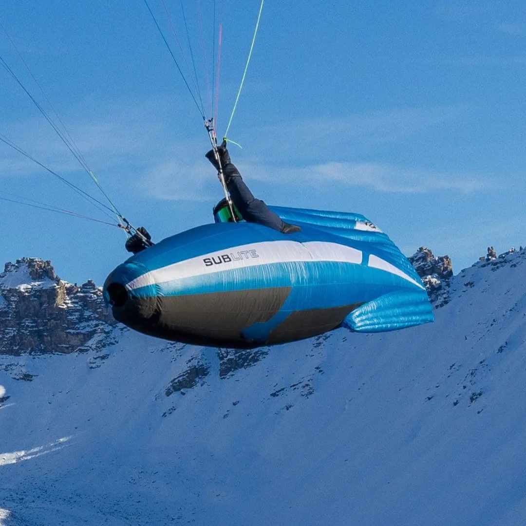 Im Flug bläst sich die aerodynamische Aussenhülle (Envelope) selbstständig auf und reduziert den Luftwiderstand massiv. Im Vergleich zum originalen Submarine wurde beim Sublite besonderer Wert auf ein einfaches Handling gelegt: Das "One toggle, one zip"-System ermöglicht einen schnellen Start, während der neue luftdichte Magnetverschluss den Beinsack (Pod) automatisch und sicher versiegelt. Die agile Aufhängung sorgt für hervorragende Manövrierbarkeit, was besonders bei anspruchsvollen Bedingungen und engen Landeplätzen Sicherheit bietet.